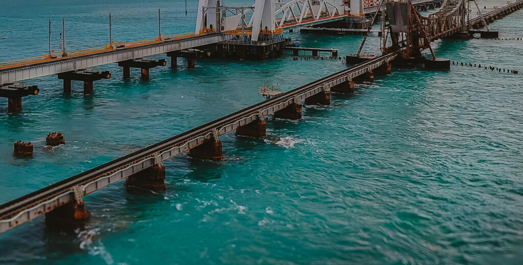 To reach Rameswaram, there is a 100-year-old bridge which rests on 145 pillars. The view of the train passing through the sea is so beautiful that the experience of watching it is remembered for a lifetime.